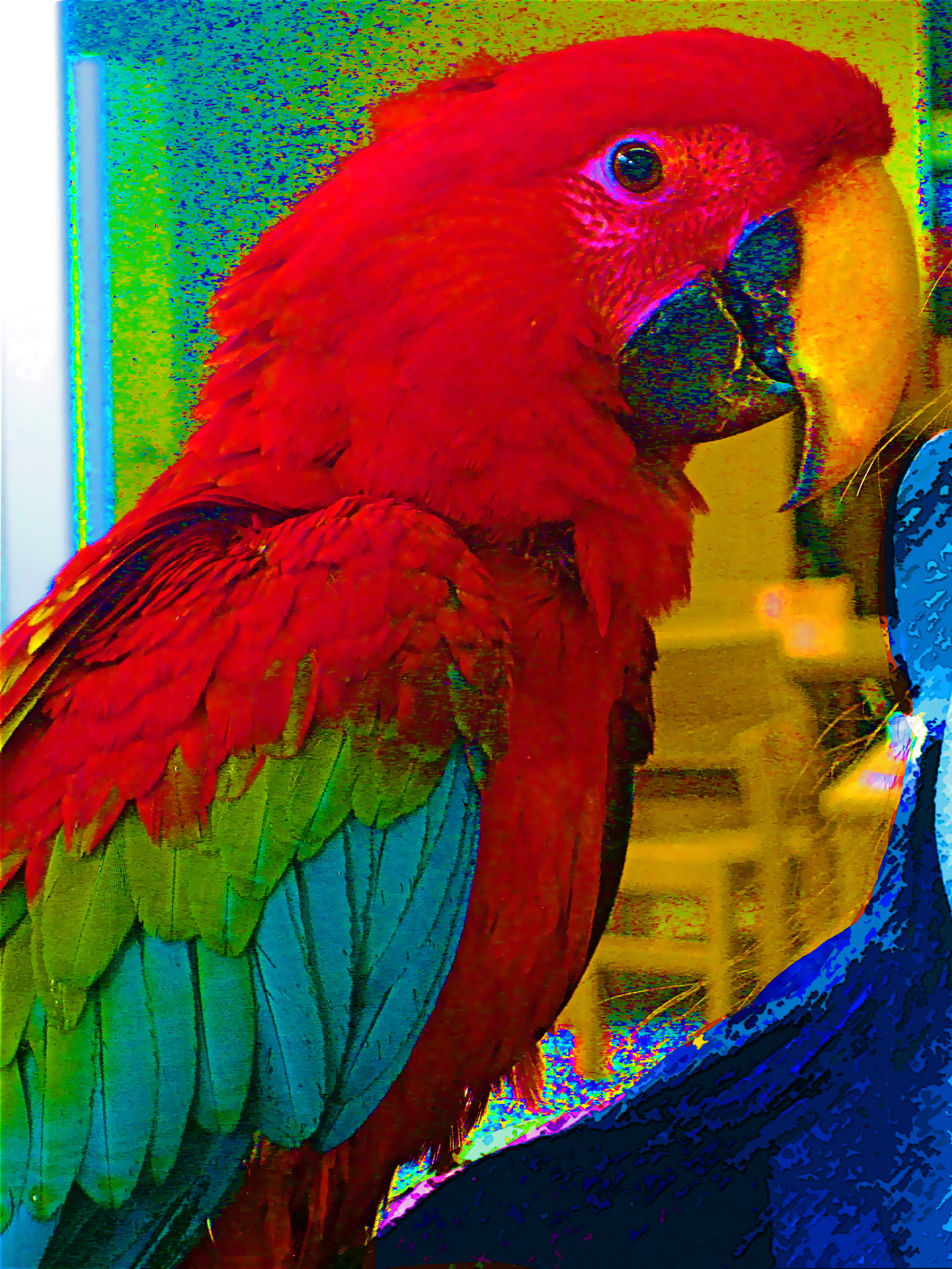 Before I could invite her in, a huge parrot swooshed overhead and flew into the room. This dame was too cool to even bat an eyelash. “Friend of yours?” she asked.