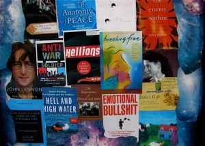 I also must confess that I am irrevocably connected to the physical book, with printed pages I can turn and dog-ear and spill coffee on and cover photos of the author or illustrations I can look at and go back to. Somehow all this helps keep me connected with the writing and even more so with the author. It reminds me of the many hours I spent looking at album cover art while listening to vinyl records. I know, like I said, I’m a geezer with cranky opinions. I still have a land line too. In fact the phone just rang as I was writing this and I was able to screen that call. It was someone who wanted to whisper sweet nothings in my ear and sell me stuff I don’t want or need. I’m not getting those kinds of calls on my cell phone. But album cover art added a whole other dimension to the music you were listening to. It’s not the same with the covers of tapes, CDs or downloaded cover art from I Tunes. Again, it’s not like I refuse to use anything but an abacus and an Etch-a-Sketch. I’m listening to Pandora as I write this and I have 28 hours of music on my I Phone, so it’s not like I don’t play well in that electronic world. It’s just that album covers have the same kind of mojo for me that books have. Not to mention the occasional surprise when 30 year old sticks, stems and seeds fall out of the crease of my Derek and the Dominos double album cover.